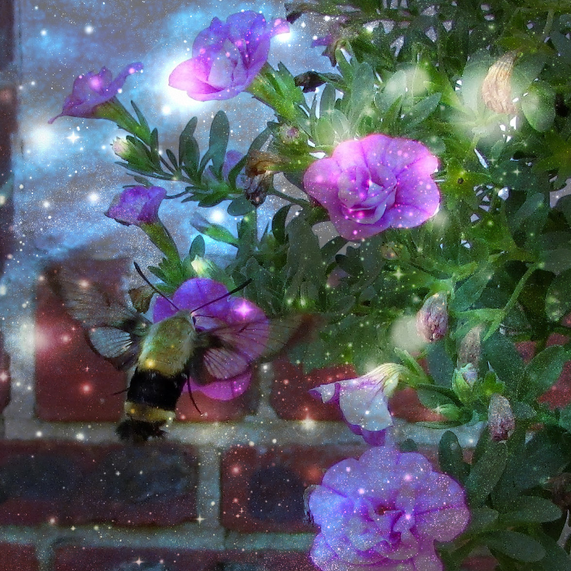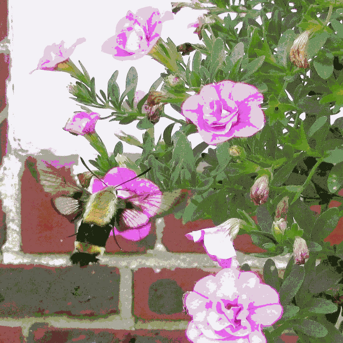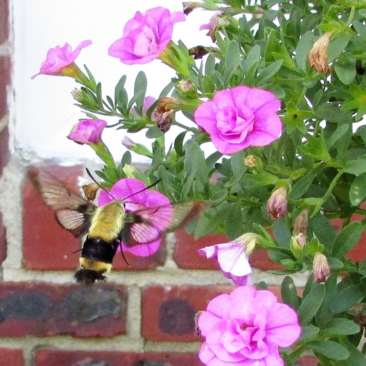 The visitor is one of my favorite insects. We see them very sporadically, and never in numbers. This makes them exciting, and when they are spotted, my husband and I will immediately call to the other, ‘A hummingbird moth is on such and such a plant.’