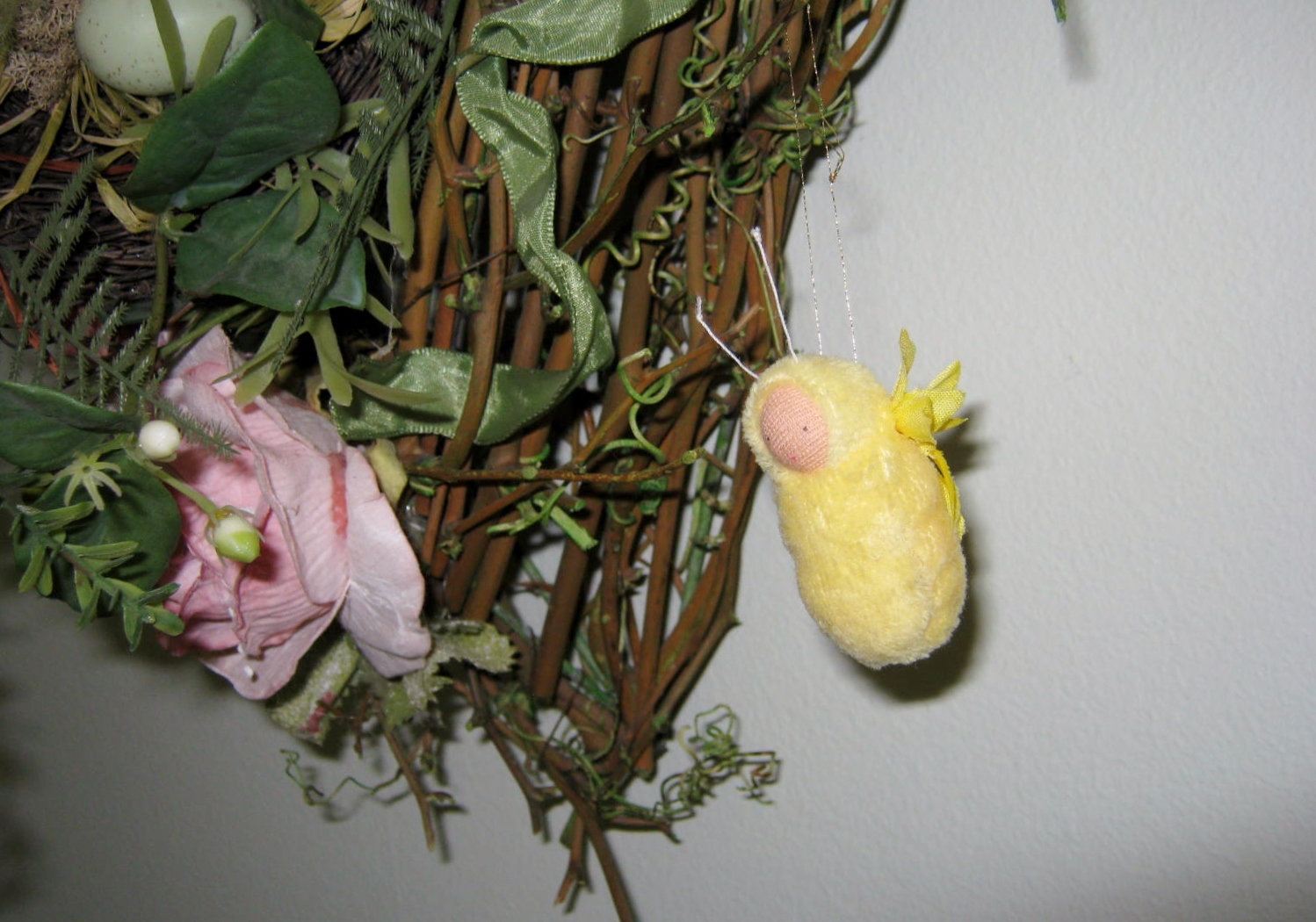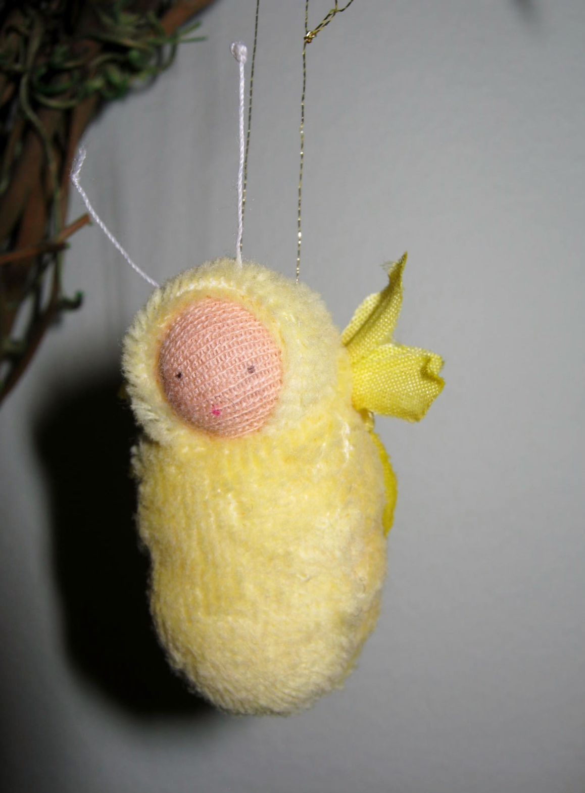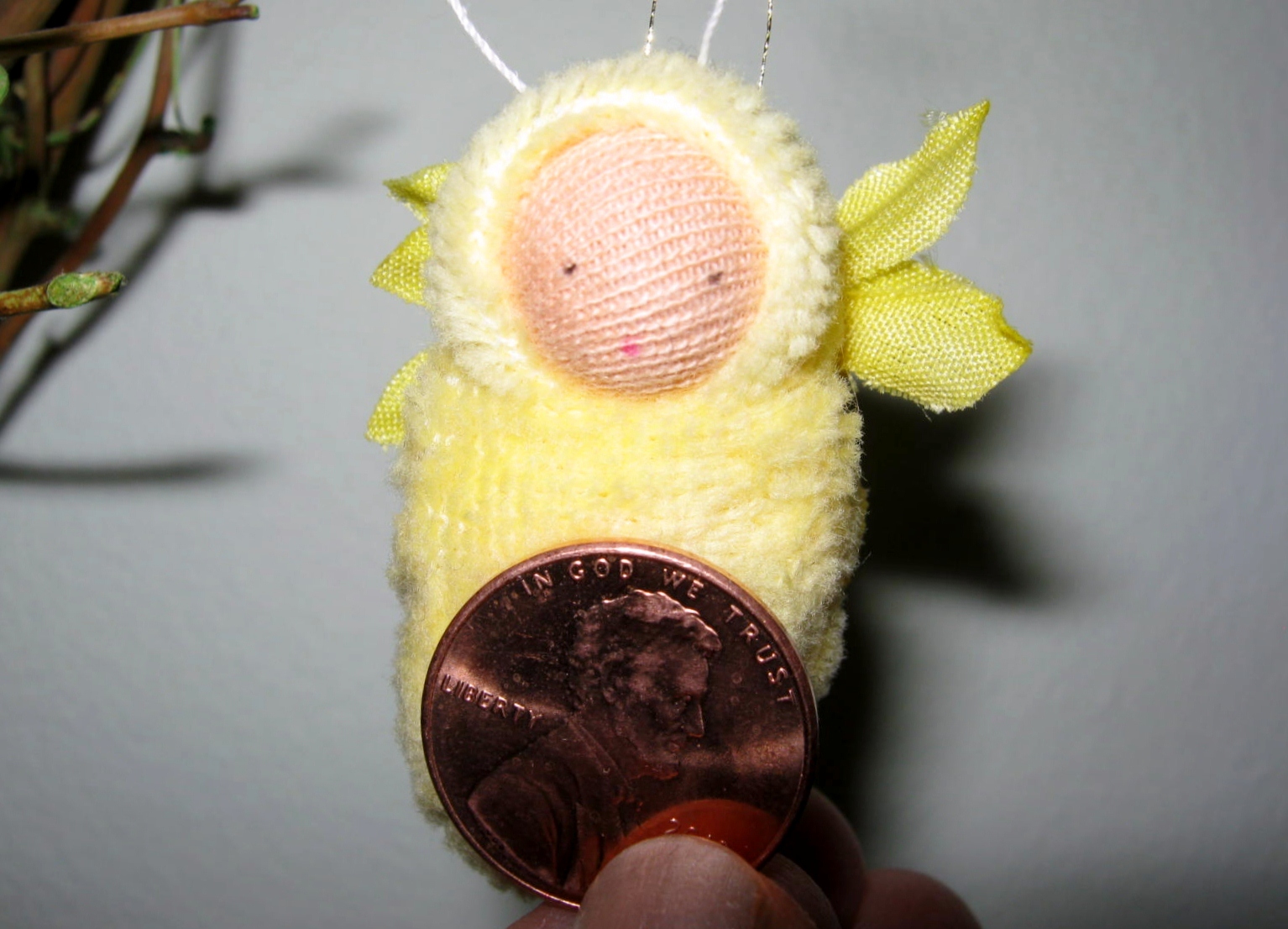 I love handcrafted items. I sell a few of my pressed flower cards on Etsy, and sometimes buy from the other artists and craftspeople who sell their wares on the site. I loved this teeny-tiny baby fairy I came upon. Here she is hanging on a wreath in my home.
