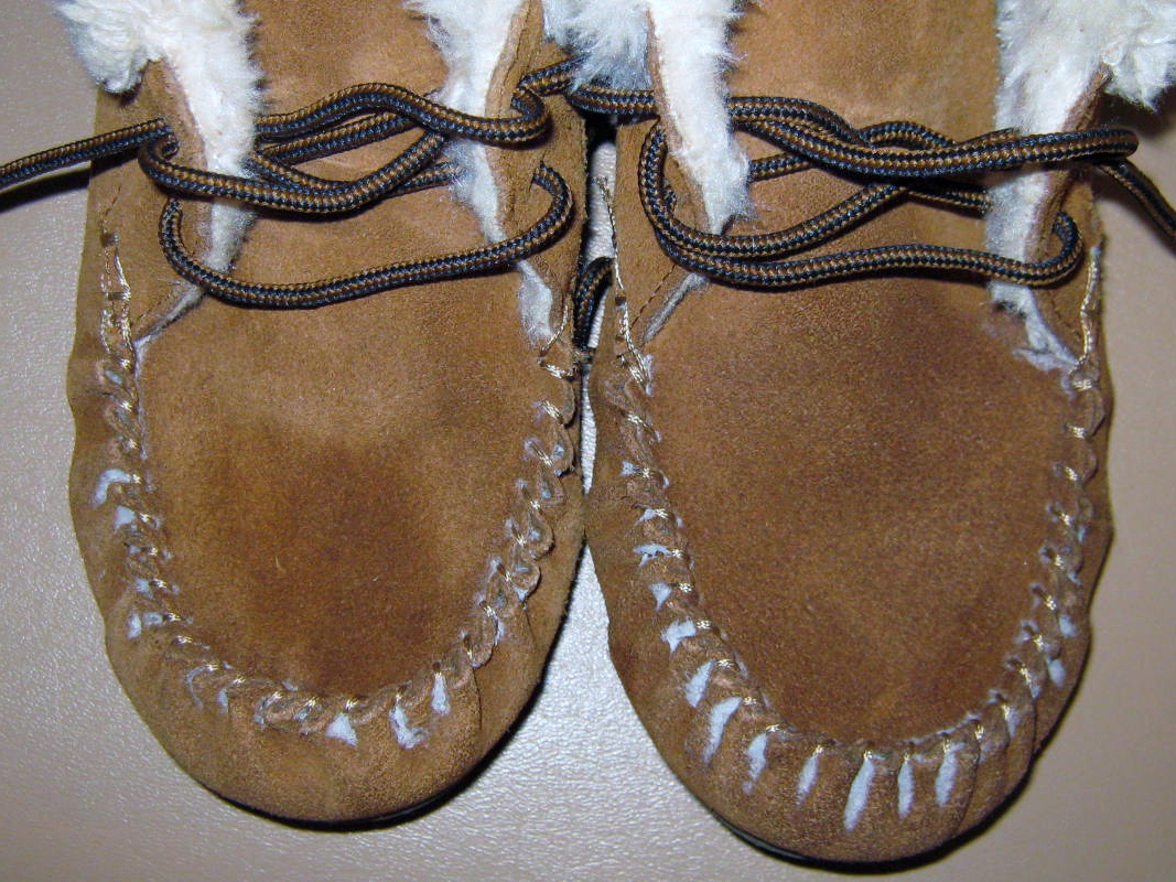 I received a pair of suede moccasin shoes/slippers for Christmas. They are super comfortable and I wear them all the time in the house. I knew that sooner or later they would be on the receiving end of a kitchen drip, and sure enough, in under two weeks they had a few oily spots marring them. I wanted to get rid of the annoying spots, but didn’t want to purchase overpriced suede cleaner. I’ve bought similar products in the past, and have found they haven’t been worth pennies, much less the near four dollars they cost now.