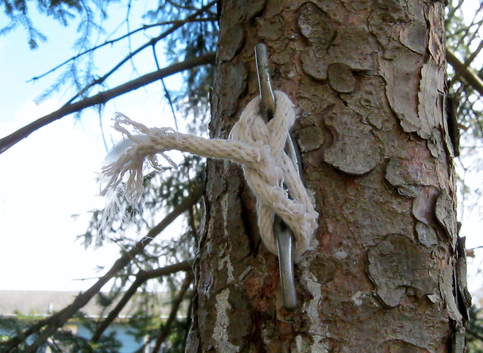 I’m not sure of the solution. Luckily, we have spare rope set aside, and will once again square knot on the amount of line we need. Last time the squirrels stole about twelve feet! I know, I know, what can squirrels possibly do with that much clothesline? I have no idea!