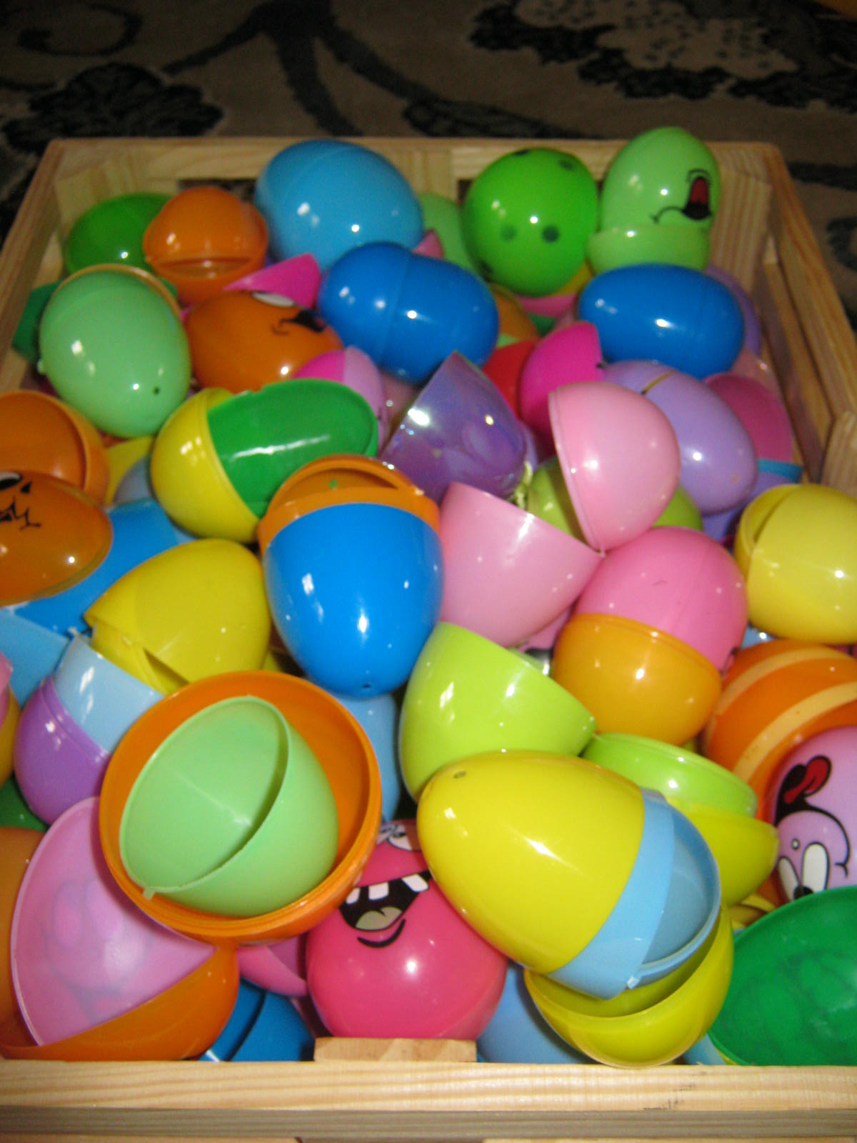 “I just “smithereened” that plastic egg,” I mumbled as my shoe encountered and “smithereened” yet another Easter Egg. The grandchildren and I have had a good time with plastic Easter Eggs. Usually they are scattered all over the floor. The little ones like to open and shut them. The older boys enjoy using them for an egg toss game. Next week I will gather up every Easter Egg, take them outdoors, and with the grandchildren “bomb” the front yard with a rainbow of eggs. Flinging the eggs and letting them stay where they land creates a random and dare I say, “natural” look to the arrangement of eggs on the lawn. In the meantime I will try to tread softly and not “smithereen” anymore eggs to bits.