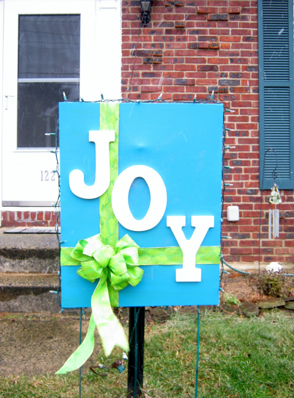 My letters of Joy were next. I used Gorilla glue for this project. If it was a canvas for indoor use I would have used my glue gun. My experience with glue guns is that in cold temperatures the glue releases its hold. Gorilla Glue, although good for outdoors, is touchy too. Here’s a whole youtube video I found on what NOT to do with Gorilla Glue.