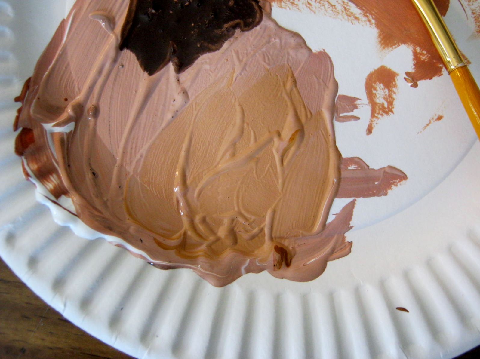 Let the repaired resin dry 24 – 48 hours. Paint with acrylic paints. Remember, you might not be able to find an exact color of fleshtone, add white or black to darken or lighten. Also, acrylic paint will be a shade or two darker when dry. I didn’t need to glaze in any way as the paint matched the matte appearance of the figurines.
