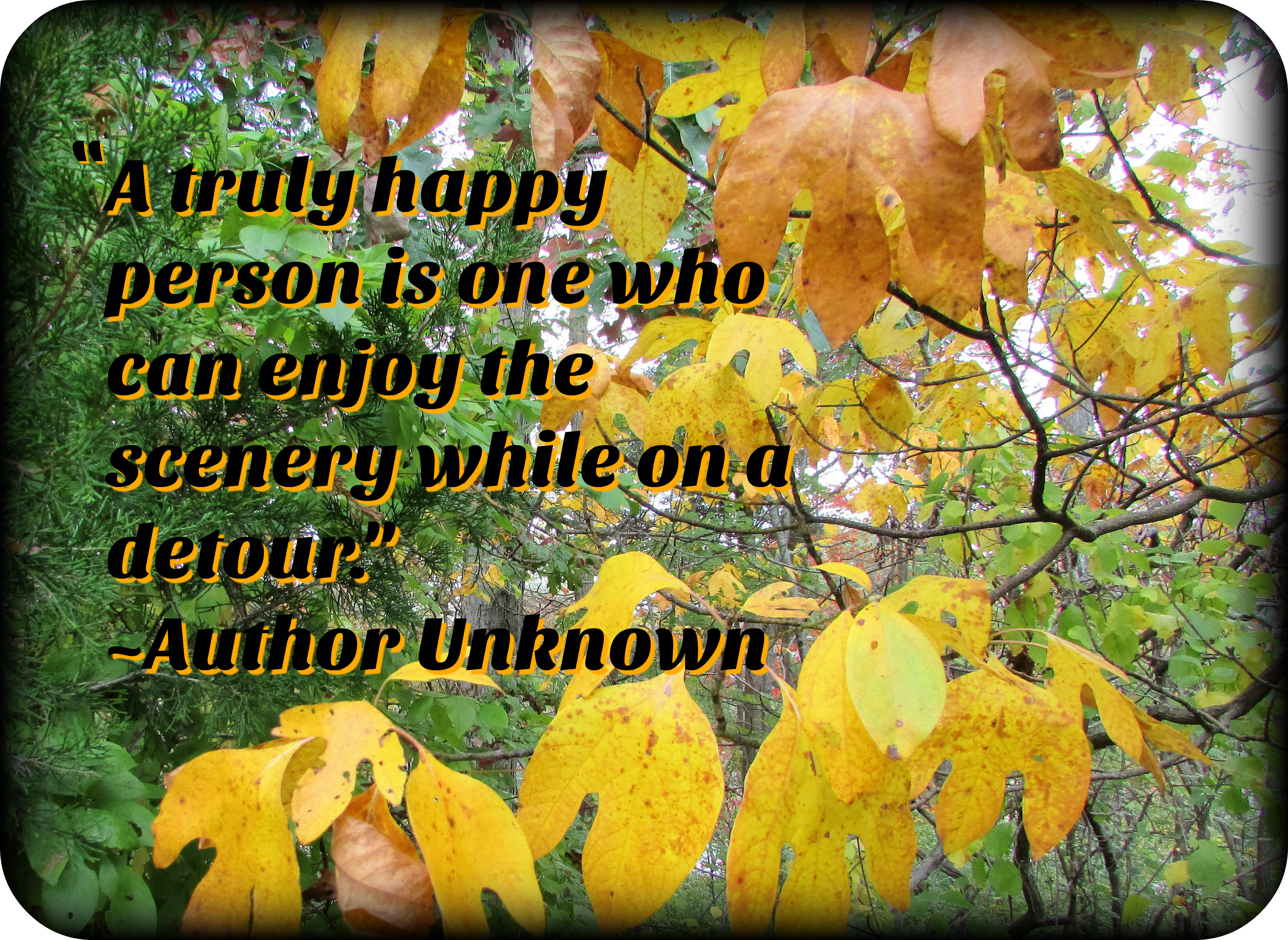 Thanks Susie, yes that is a good way of looking at it. We’ve found some shortcuts, fun places to visit, on our detours. Have a happy day! LikeLike November 3, 2016 at 6:39 am Reply