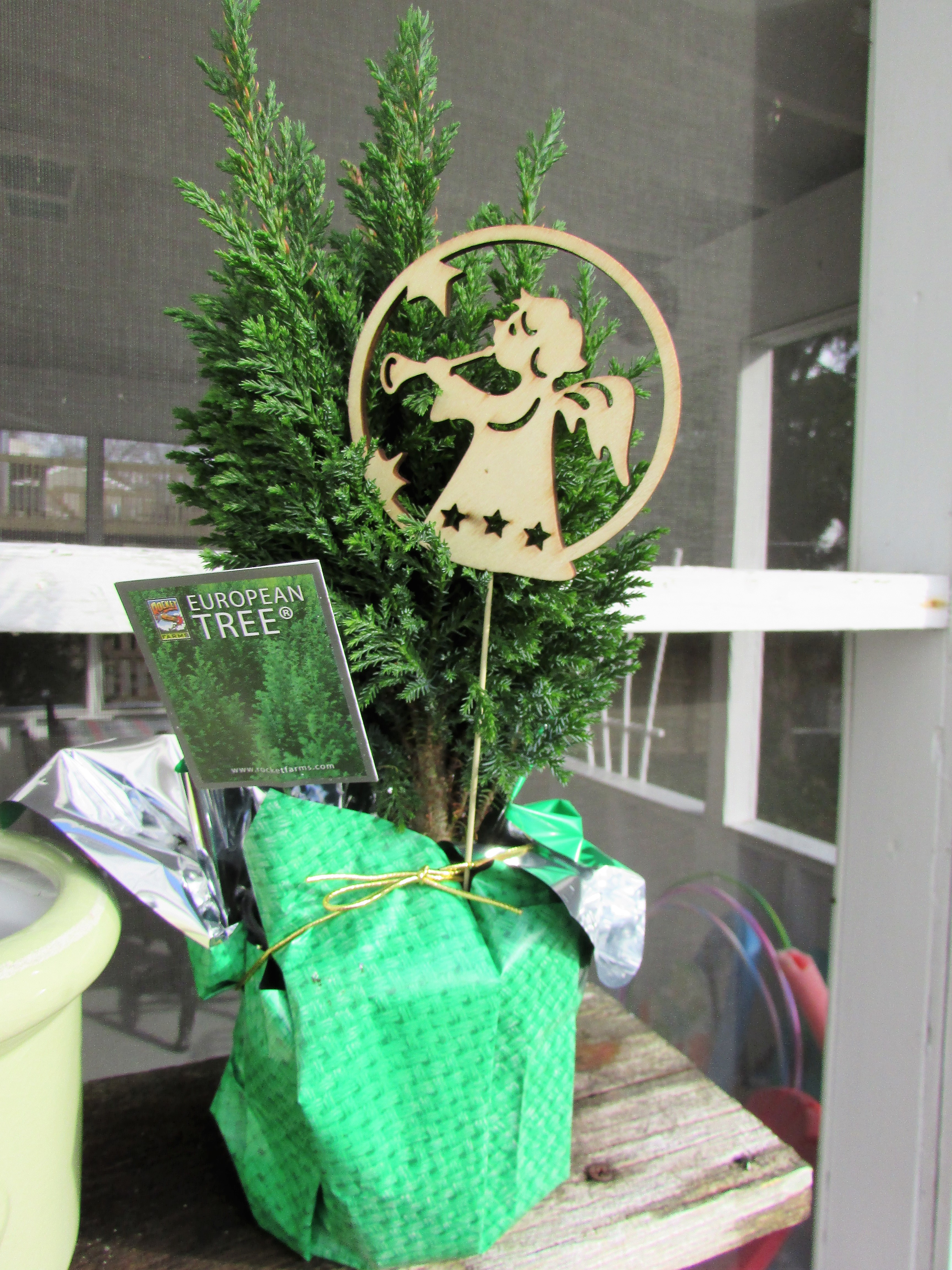 I kept mine in the pot it came in, placed it in a ceramic pot, and added a bit potting soil to keep it steady. I topped it off with a bit of moss. I think the tree is lovely. The ornament it came with was the perfect finishing touch, or you could add a special ornament of your own.