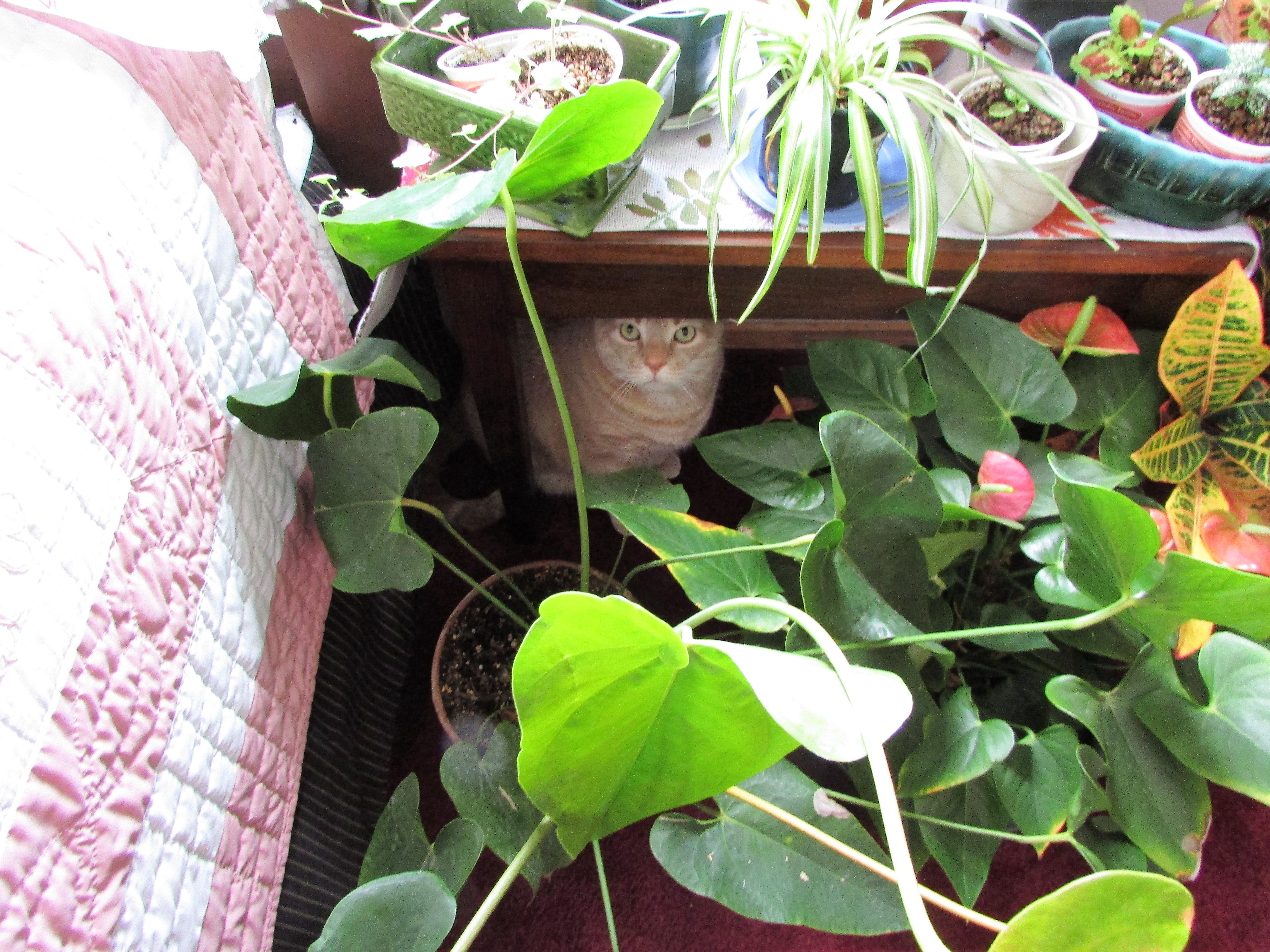 Hans, one of our cats, likes hanging out in the accidental garden too. At first, I didn’t know he was there, and then I felt eyes watching me. Surprise!