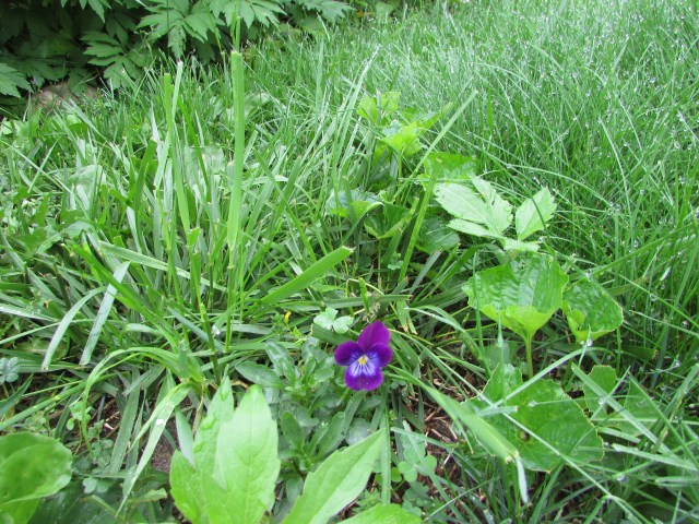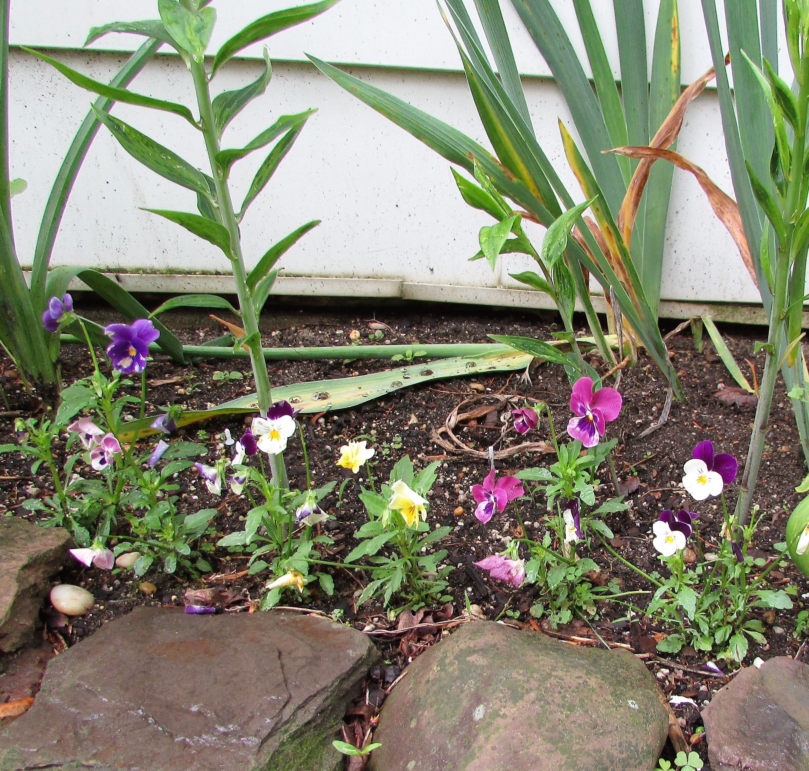 This is the patch of Johnny-Jump-Up Violas the volunteers have sprung from this year. I have relocated enough of the flowers to plant a ten-foot border along my back porch. They will fill in and maybe self-seed more volunteers for next year. Hooray for Spring’s volunteers.