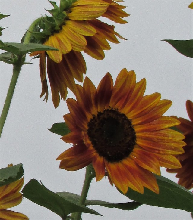 Although they bloom all summer, sunflowers are commonly associated with Autumn. I recently found these beauties growing in the front of a neighbor’s home. The day was overcast, the sun still rising, and the grey of the sky created an unearthly backdrop for these beauties. I think they will be perfect to use as the September header image for the blog. Good-bye August…Hello September.