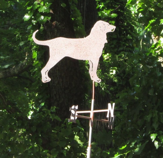 I’ve noticed most weather vanes tend to be in resort areas, or depict a beloved animal or hobby. This week’s weather vane seems to be a Labrador of some type.