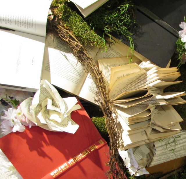 As a lifelong lover of books, I have mixed feelings about using books for crafts, although I have done so on numerous occasions. I enjoy cutting phrases out of books to use on greeting cards. You can see a sample and how-to on using these cut out phrases on The Flower Ark/Tulip Greeting Card.