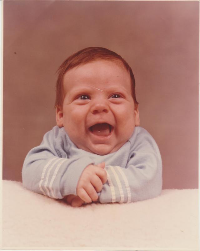 Thanks..he was only 2 months old in that photo. Within three months that dark baby hair somehow turned platinum blonde.