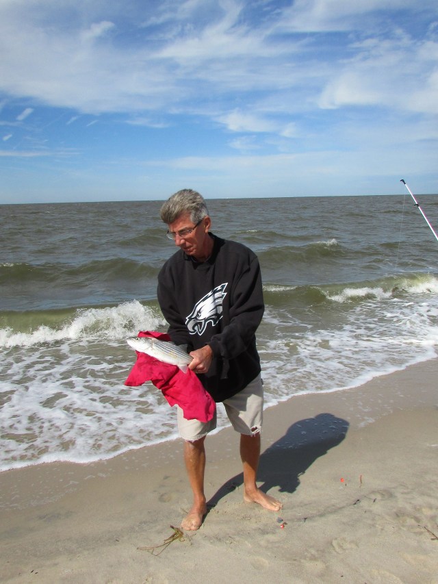 These photos of ‘one’ are part of Cee’s Fun Foto Challenge. The fish above is the one that didn’t get away. It was the prettiest catch of the day. We catch and release so he/she is still out there in the Delaware Bay waters.
