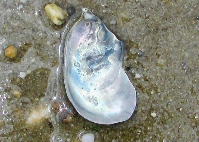 One oyster perfectly mirrored the blue of the sky above it.