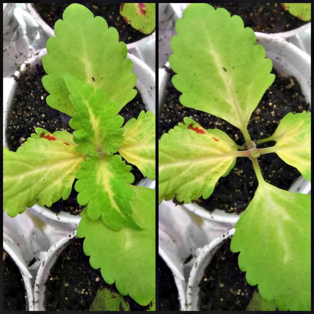 Legs! Well, not really legs where the coleus are concerned, but definitely a bit of legginess can develop as my young coleus sprouts grow.