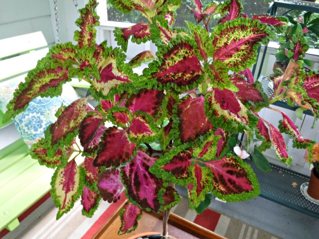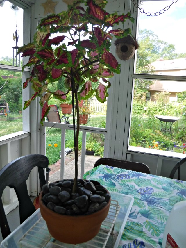 This is my coleus topiary, in the works for two, maybe three years; I’ve lost track of time. Started from a spindly specimen, it has grown into a beauty.