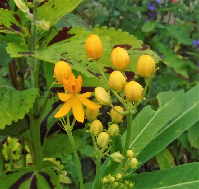 Another flower they love is Asclepias curassavica commonly known as ‘Silky Gold’ Milkweed. This flower and its leaves are a host plant for the monarch caterpillar.