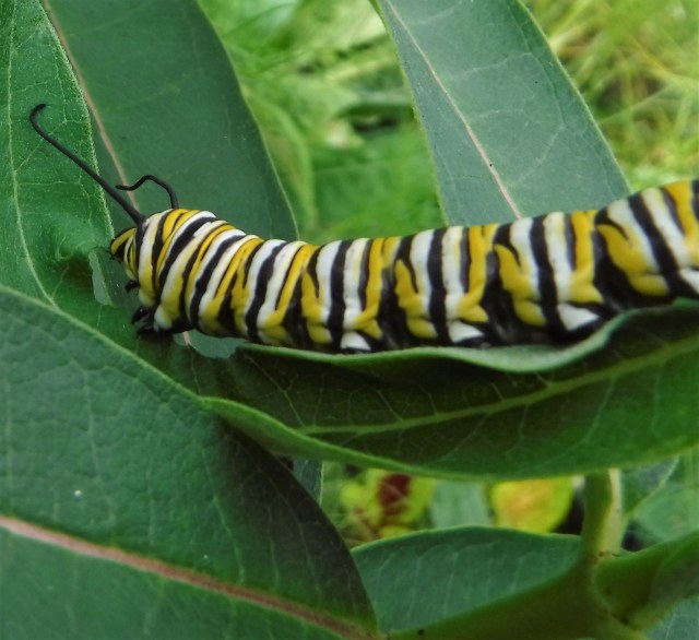 The caterpillars are poisonous to birds and other wildlife after eating the milkweed. The milkweed contains toxic cardenolides which keep some predators, but not all, away.