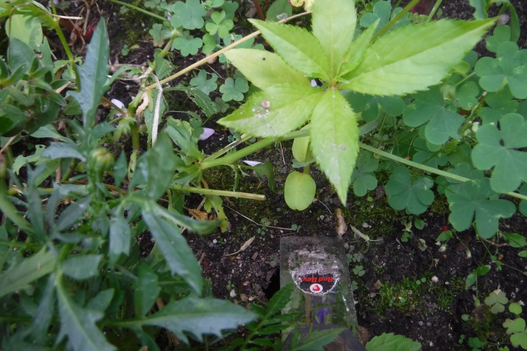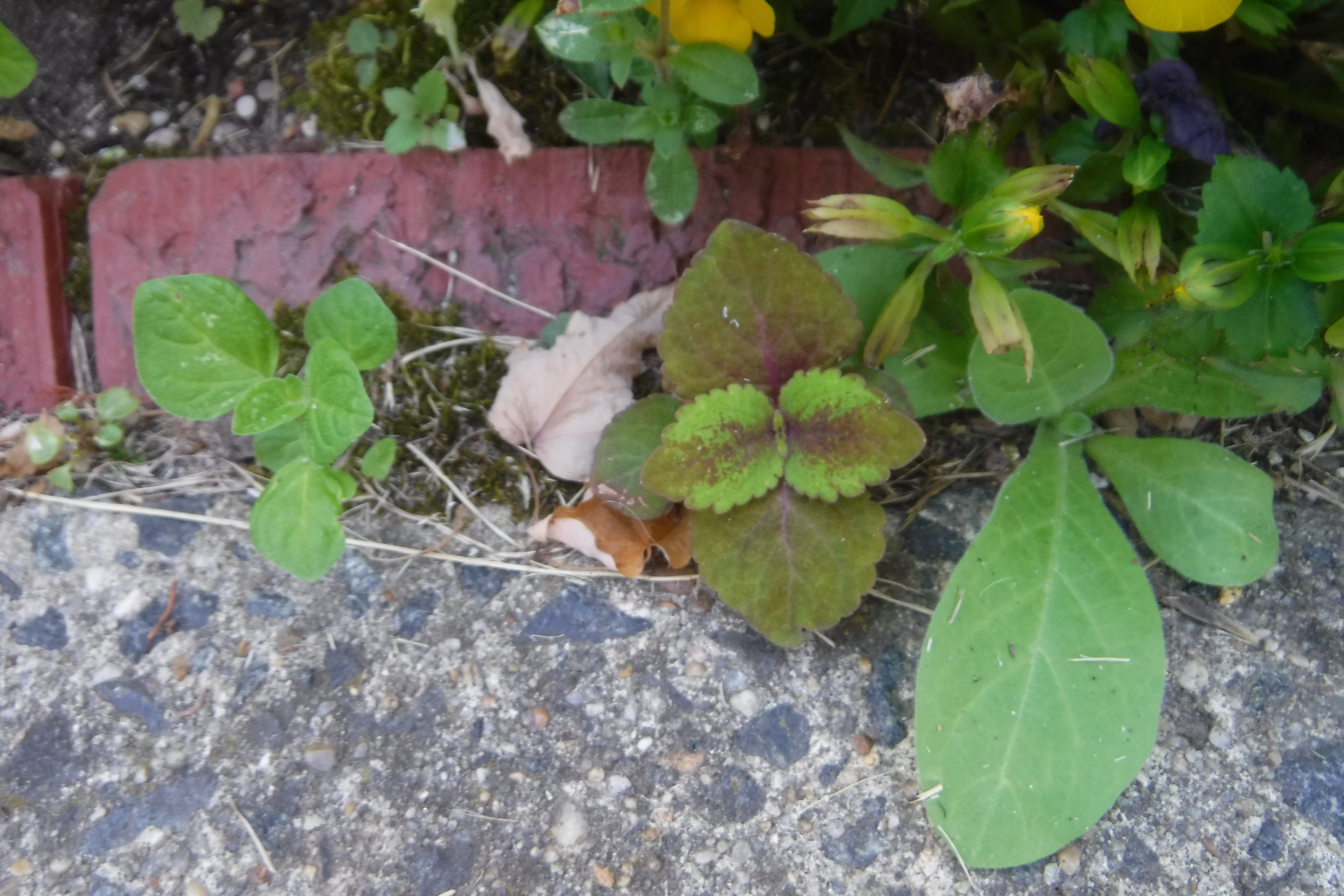 I’ve mentioned this tip before, but for newcomers to the blog it’s worth repeating. One of my favorite tools for transplanting volunteer plants is a putty knife. It slides right down between sidewalk cracks and lifts the small plantlets roots and all. It also digs deep and severs the roots of Dandelions, evening Primrose, and Plantain, all good weeds, but sometimes too exuberant in their growth.