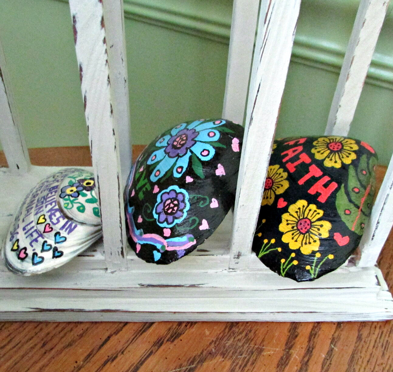 Another creative outlet for Winter’s end has been painting seashells for the Jersey Shore Shells group. I love clamshells and enjoy blinging them up with acrylic paint pens.