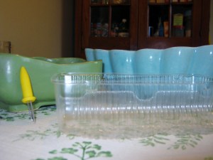 I poked holes for drainage in the plastic with the corn holder.
