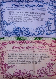 Sowing seeds and indoor gardening seem to be dominating my winter blog posts. I am starved right now for green, tired of the bare branches of trees silhouetted against the sky. I have been sowing seeds in hopes of harvesting Microgreens. Microgreens are harvested from seeds sprouted through the early leafing-out stage. I am using seeds from Pinetree Garden Seeds. This is my first attempt at this type of gardening.