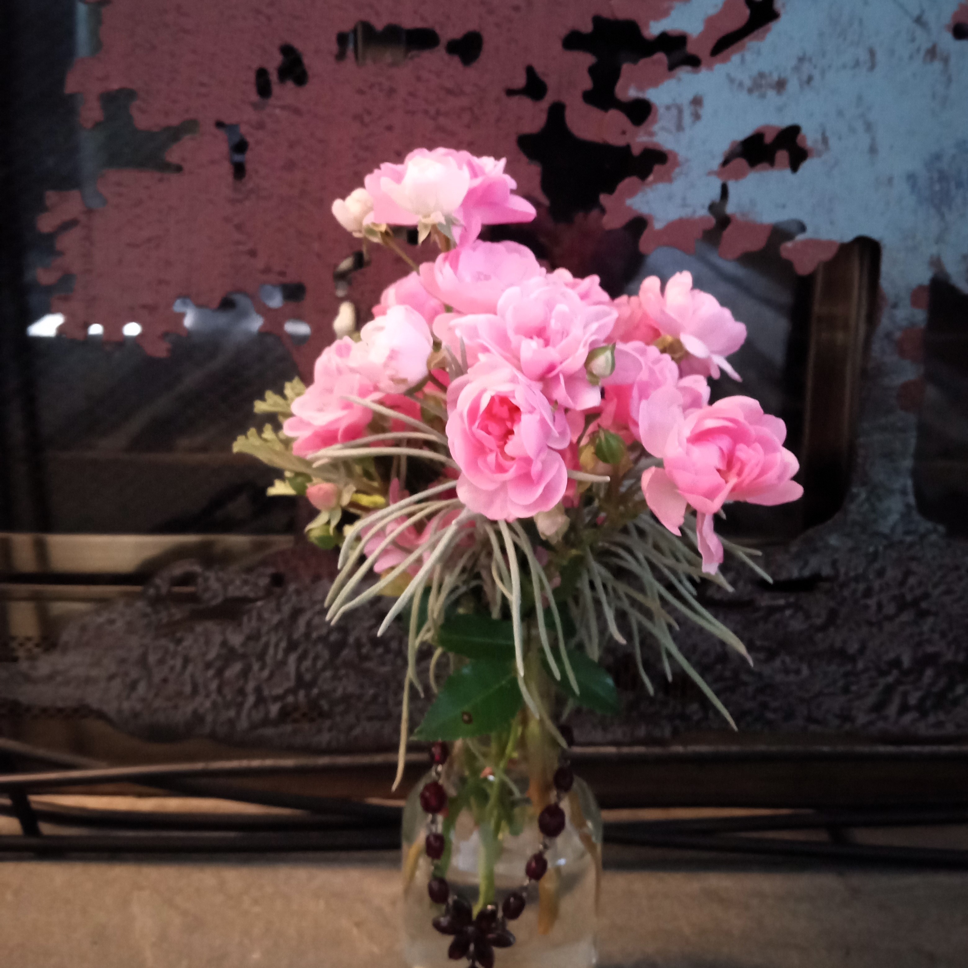 We’ve had a hard frost and there’s not much left alive in the garden. Happily for me, there are still several roses blooming. They are rewarding me now after a summer slump. It’s easy to decide on what to use when your choices are limited.