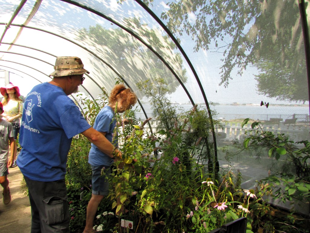 Today, I had strange companions along for the ride as I drove to Red Bank Battlefield. Ten caterpillars, mid-sized in their cycle, rode along to become residents of the Butterfly House. The fennel plants collapsed a bit in the heat, but the caterpillars did well.