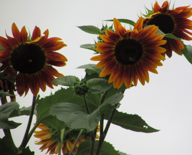 Although they bloom all summer, sunflowers are commonly associated with Autumn. I recently found these beauties growing in the front of a neighbor’s home. The day was overcast, the sun still rising, and the grey of the sky created an unearthly backdrop for these beauties. I think they will be perfect to use as the September header image for the blog. Good-bye August…Hello September.