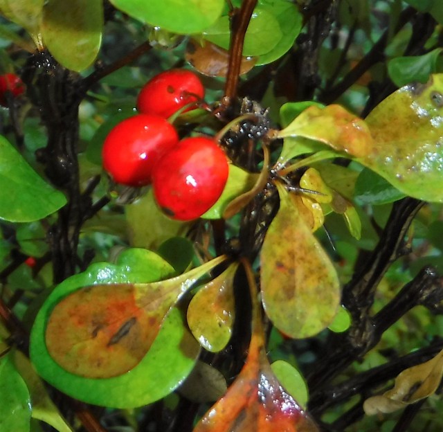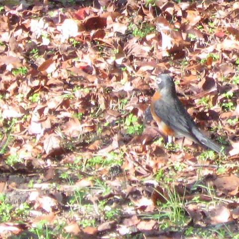 Further along the path we saw some robins, hanging around long after the first frosts. They never leave our area to fly south; they Winter over here, finding berries and other fruits. I need to remember to place a bit of fruit on the platform birdfeeder and maybe draw them in.