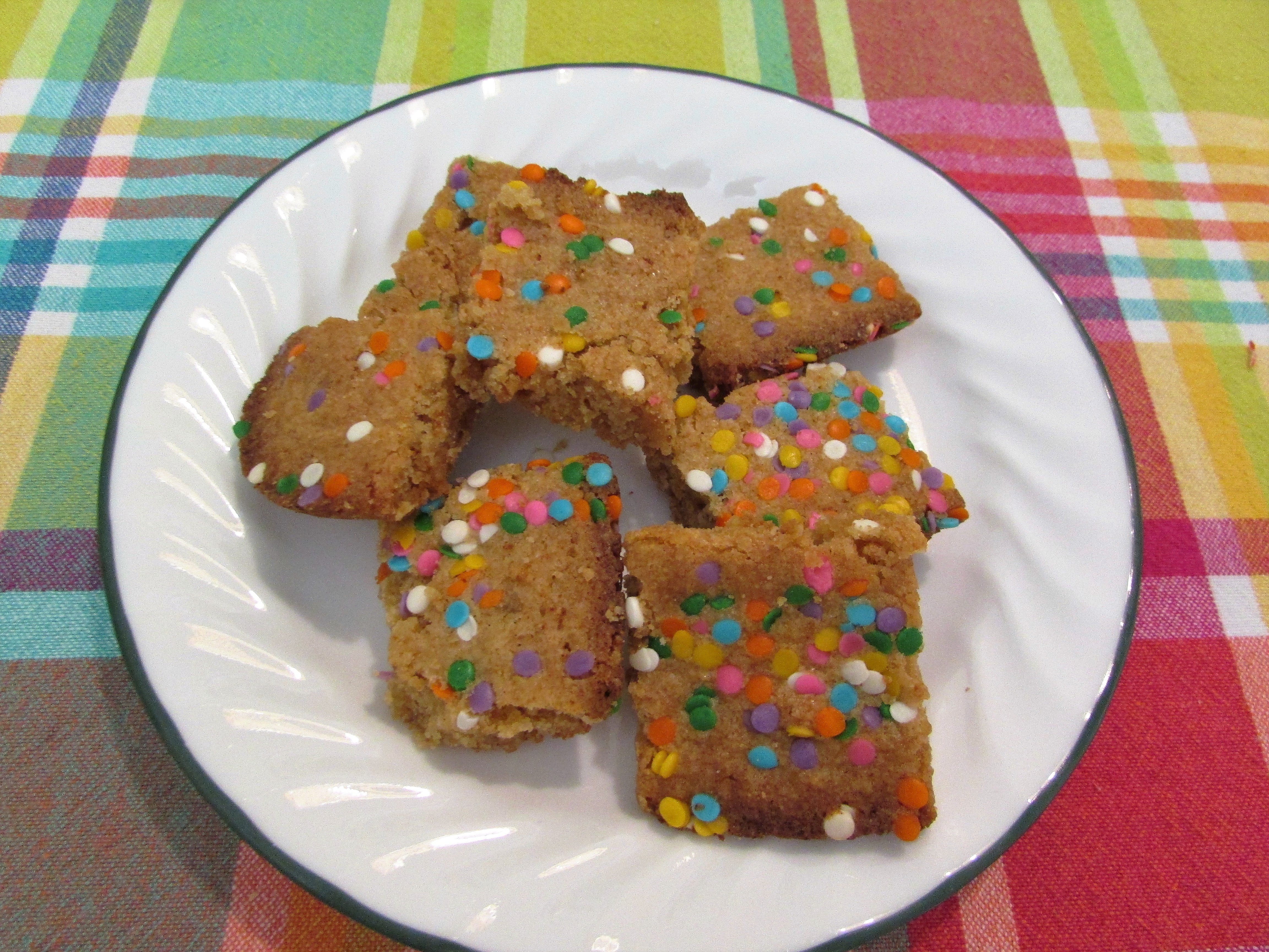My grandsons visited this weekend, and I had no treat to offer them. These blonde brownies were easy to make and brought forth questions of, “Can I have another one?”