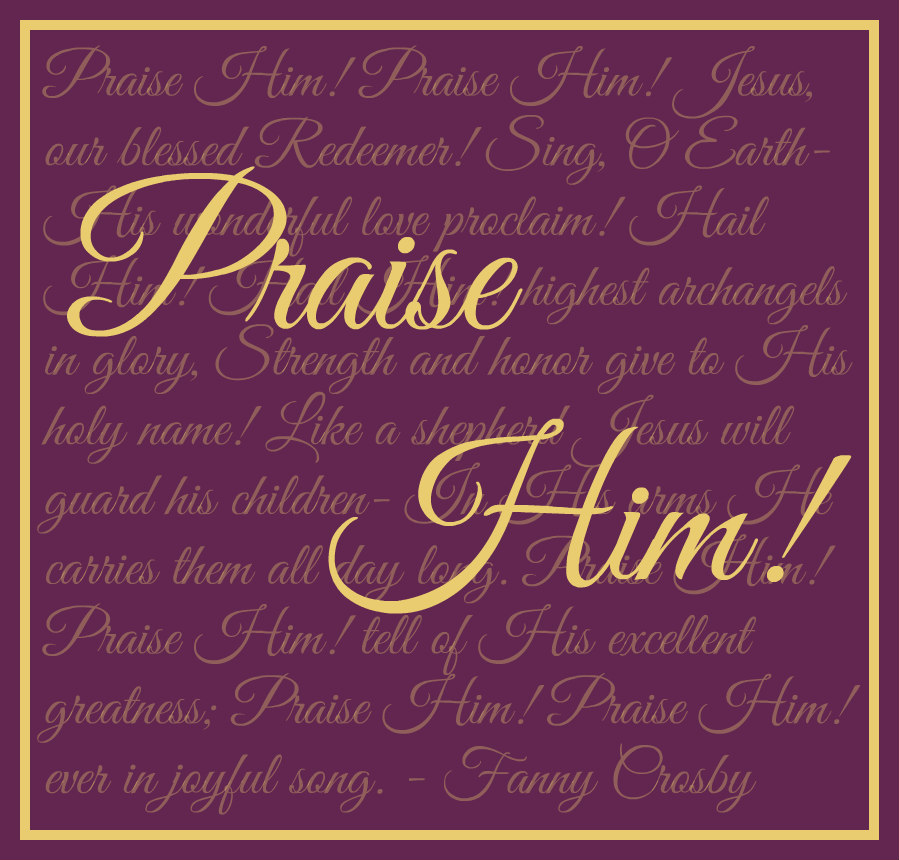 I ask you to read the words of John and Spurgeon out loud. We can all add some praise into the cacophony of so much contemptible negativity and attempted mind-control. The best defense against evil is praising the Lord and calling upon His Holy Name. Amen.