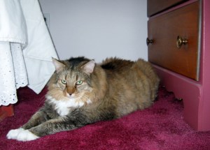 This is my cat Rusty. This is my cat Rusty…HIDING…in what he considers a very safe spot. He knows he can make a quick getaway under the bed’s dust ruffle. Why is Rusty hiding? Well, Rusty hides at the first sign of visitors or something going awry, and my, oh my, did things go awry a week or two ago.