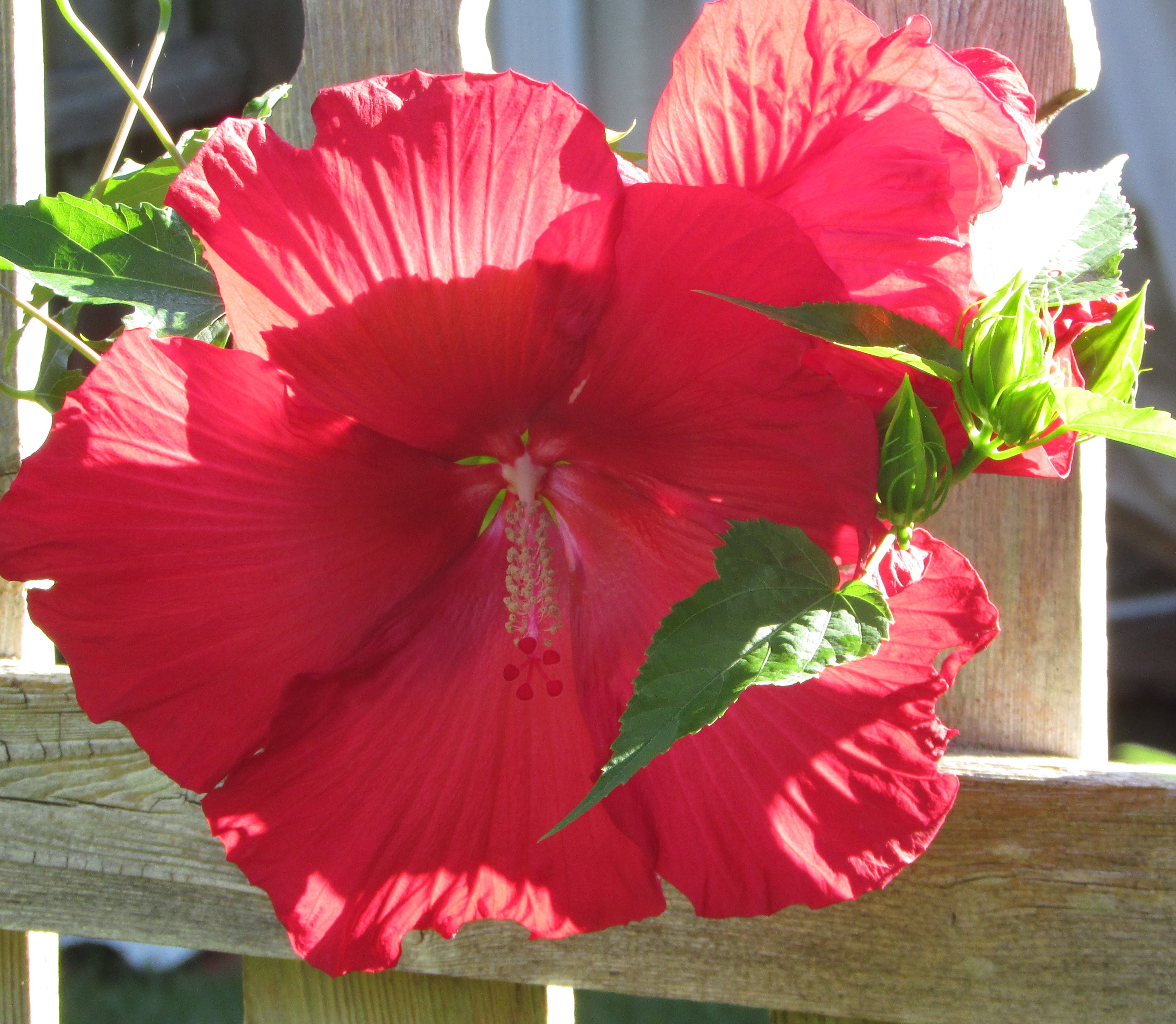 My red tropical hibiscus is a favorite too. I carried this plant away from a neighbor’s trash heap several years ago. The hibiscus wasn’t in the best of shape, half dead and a bit buggy, but I’ve nurtured it over the years and it has rewarded me with double blooms all year long. This hibiscus must be brought indoors before the first frost arrives.