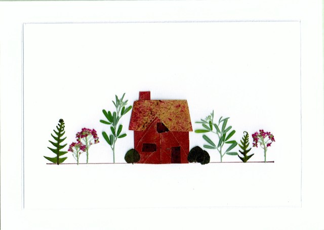 I use quite a few Autumn leaves in my pressed flower compositions. They are great for cutting into different shapes. I create many things with the pressed leaves: birdhouses, wagons, baskets, flowerpots and even small houses.