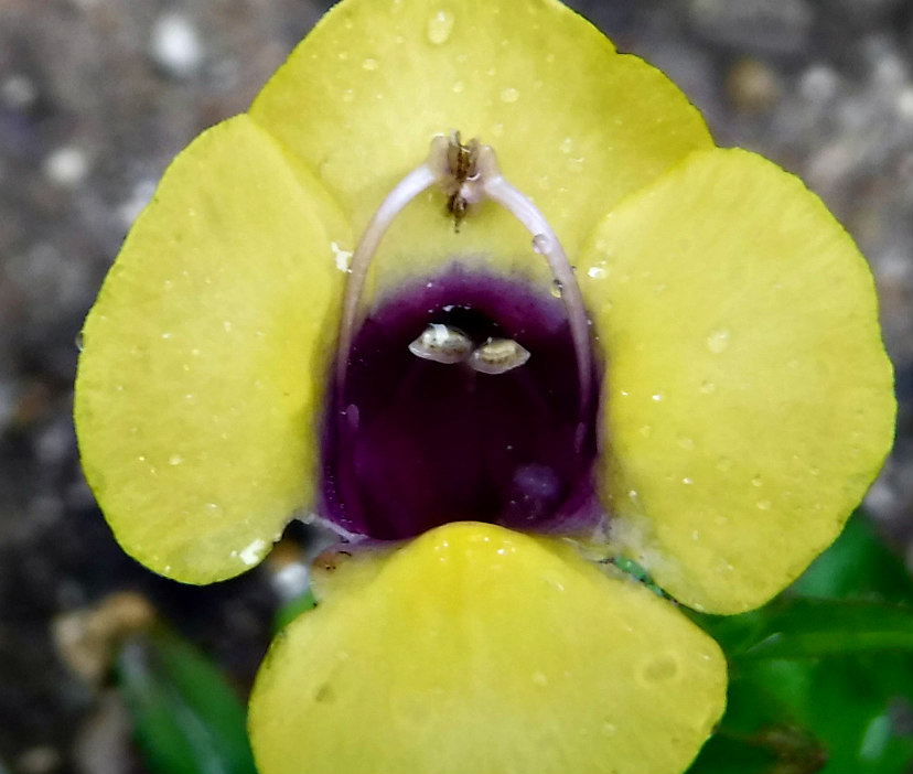 Torenia is also known as the wishbone flower. I shook away the water from this blossom so the wishbone would be visible.
