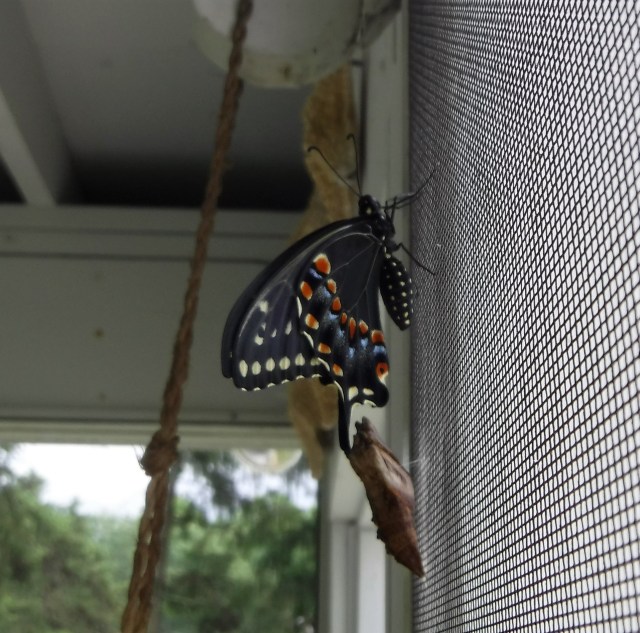 Why do I do this you might ask. Because every time the caterpillar transforms into a butterfly I am amazed…and…if I chose to just walk away and leave them where they first hatch most get eaten by predators. Also…