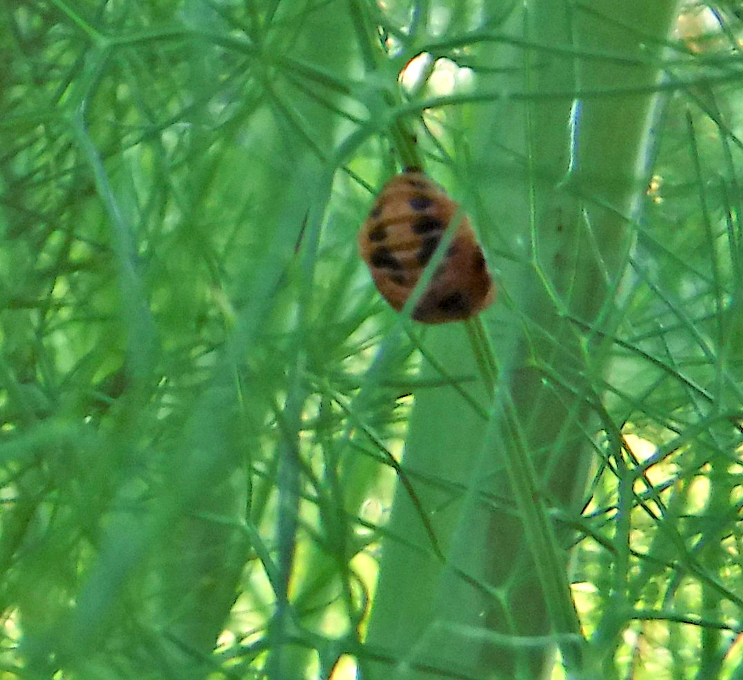 Without my reading glasses on, I would never spy the rounded yellow eggs on the thin fronds of fennel. Dill, Parsley, Rue, and Fennel are a few of my garden plants that are host plants for Black Swallowtails.