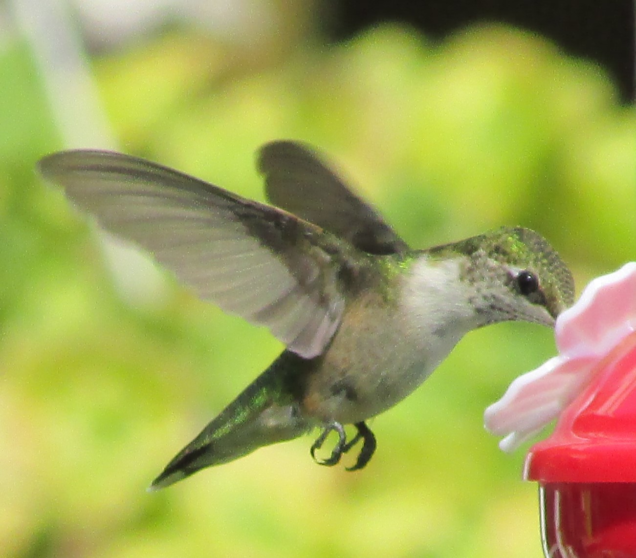 We’ve noticed the tiny hummingbirds are the bravest birds in the yard. One hummer seems to know our habits, and when the feeder is removed for cleaning and refilling, he/she will hover near the kitchen window doing its best to prompt us to hurry and bring out the nectar.