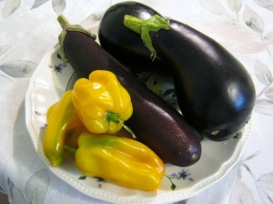 Golden Mohawk peppers and eggplant…Gorgeous!