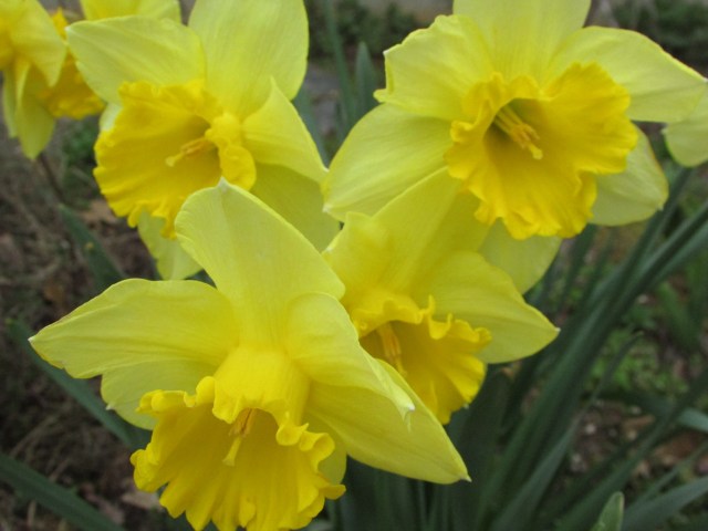 The yard is dreary beneath rainy March skies, but the gardens are ablaze with the captured sunshine of daffodils.