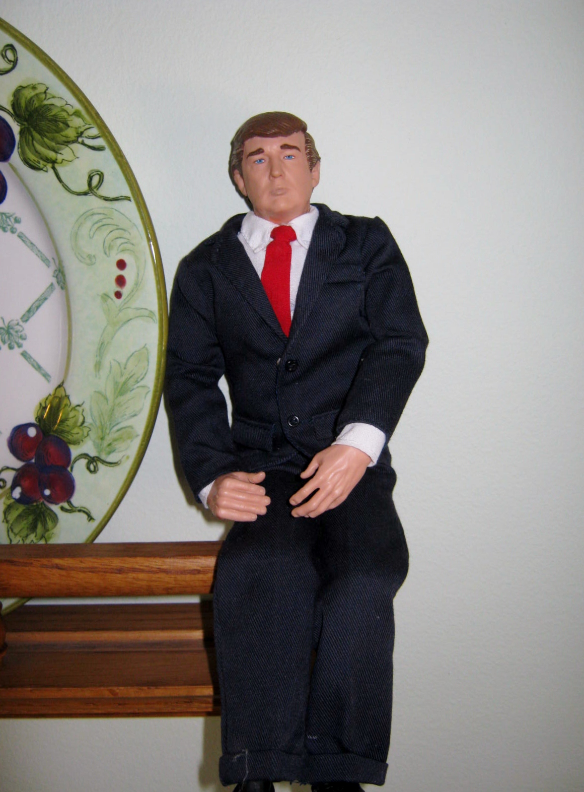 The hat my husband is wearing in the photo expresses his opinion concerning the upcoming election, the button expresses mine.