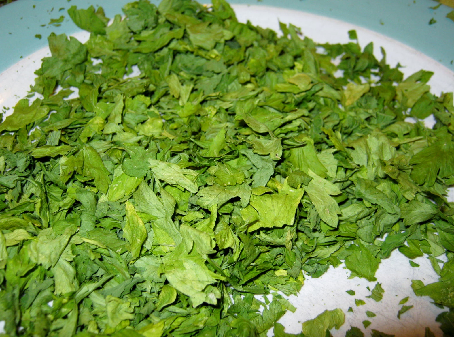 Using the trunk of my car to flash-dry parsley and other herbs has been one of my better “quirky” ideas. Gently rinse fresh herbs, dry on a towel, lay in a single layer on a metal cookie sheet, place in your HOT car.
