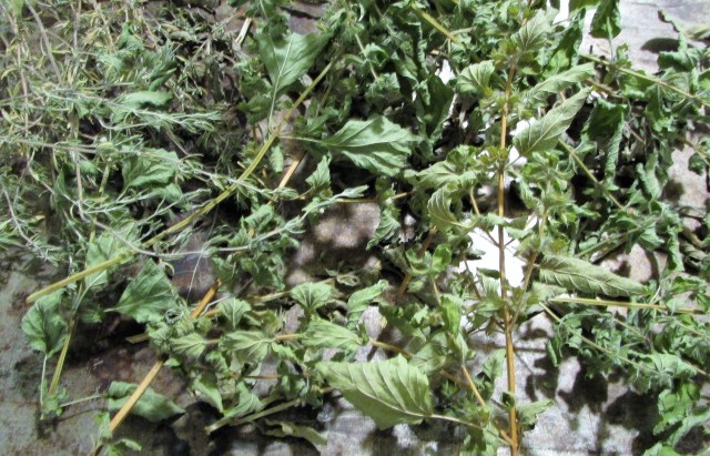 In the photo above I’ve dried lemon balm, thyme, and basil. At this stage, the herbs are very dry. To further ensure they have no moisture left in their leaves I keep them in labeled brown lunch bag for a week or two longer, before final storage in a jar or plastic bag.