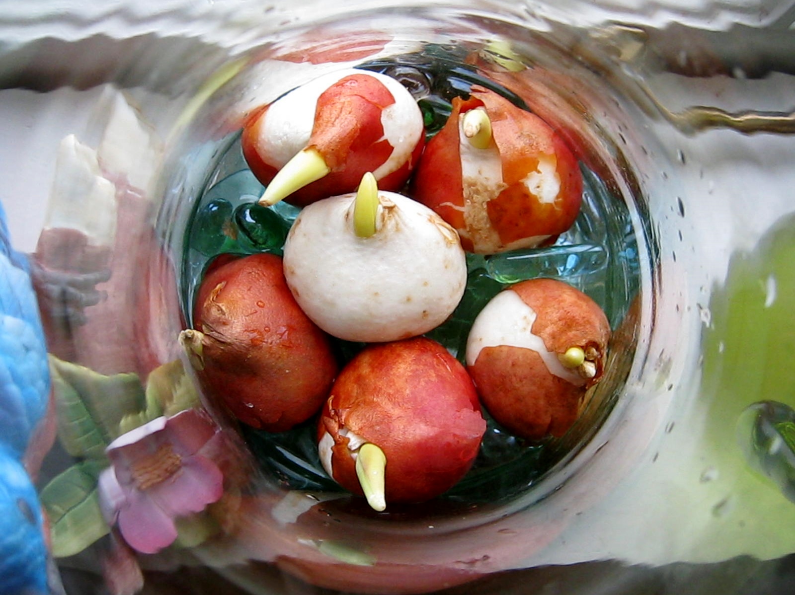 I love to force spring bulbs at this time of year. I gathered these ‘Antoinette’ tulips from the cold shelves of the garage and brought them into the house, planning to grow them in water.