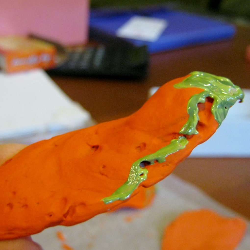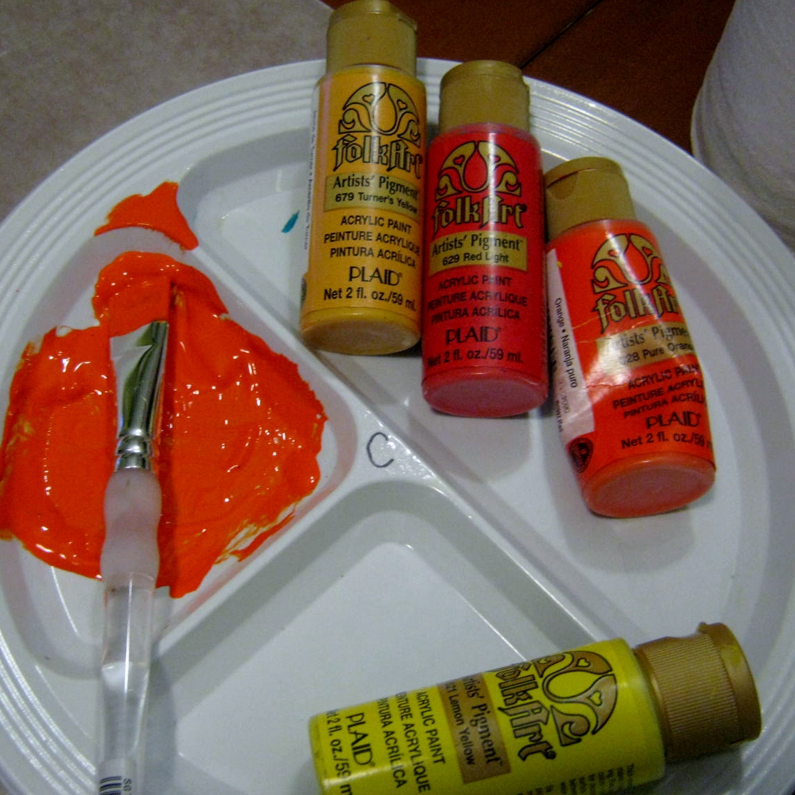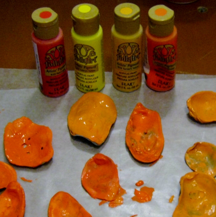 I broke out my Folkart acrylic paints and a brush and began to paint my shells.