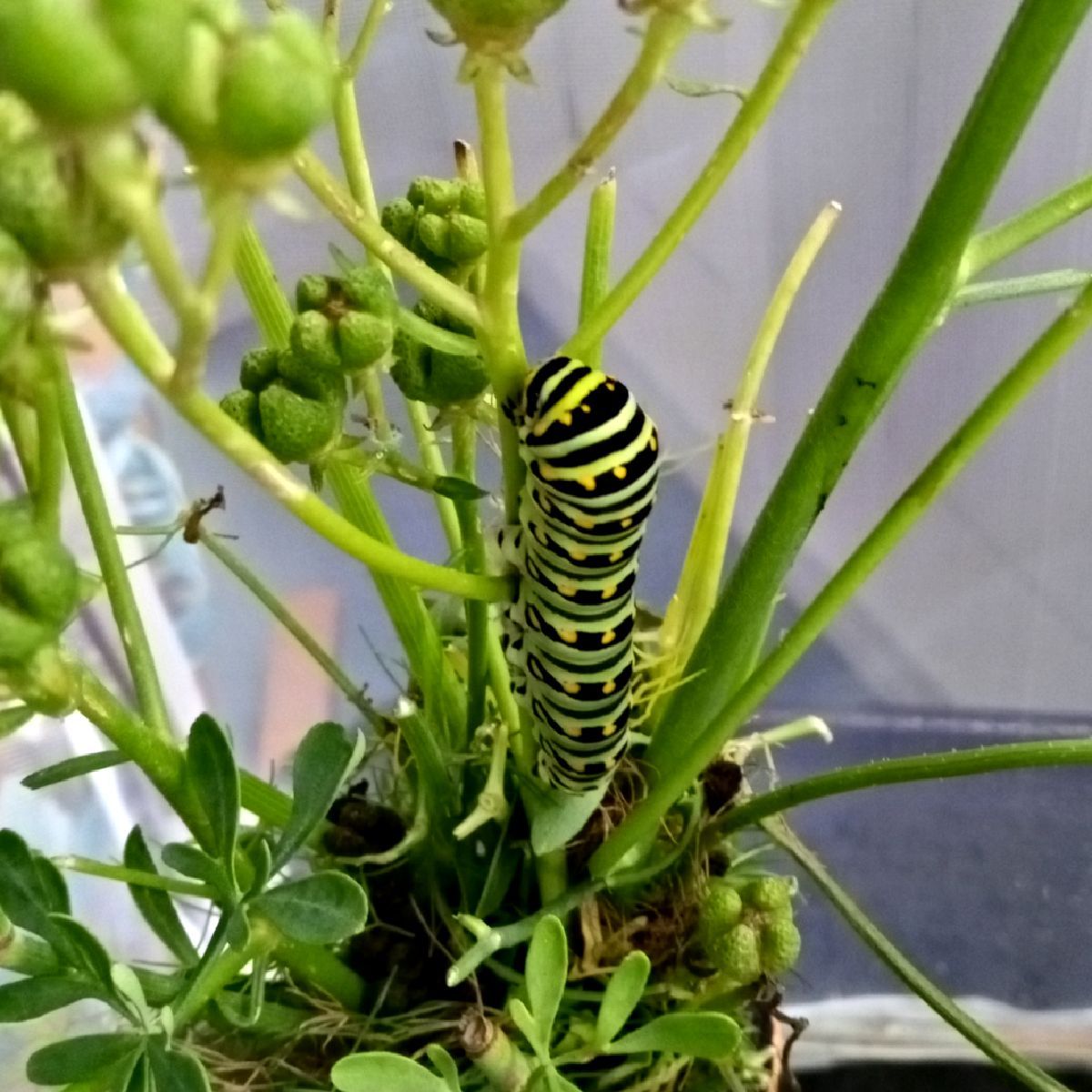 I have seven smaller caterpillars happily munching the new bouquet. The climate in this area has been perfect for the development of caterpillars now that the wildfire smoke is gone. This bouquet will soon be eaten down to mere nubs, not a long-lasting arrangement to be sure. All of these herbs, along with parsley and Queen Anne’s Lace are host plants for Black Swallowtail butterflies in my area.