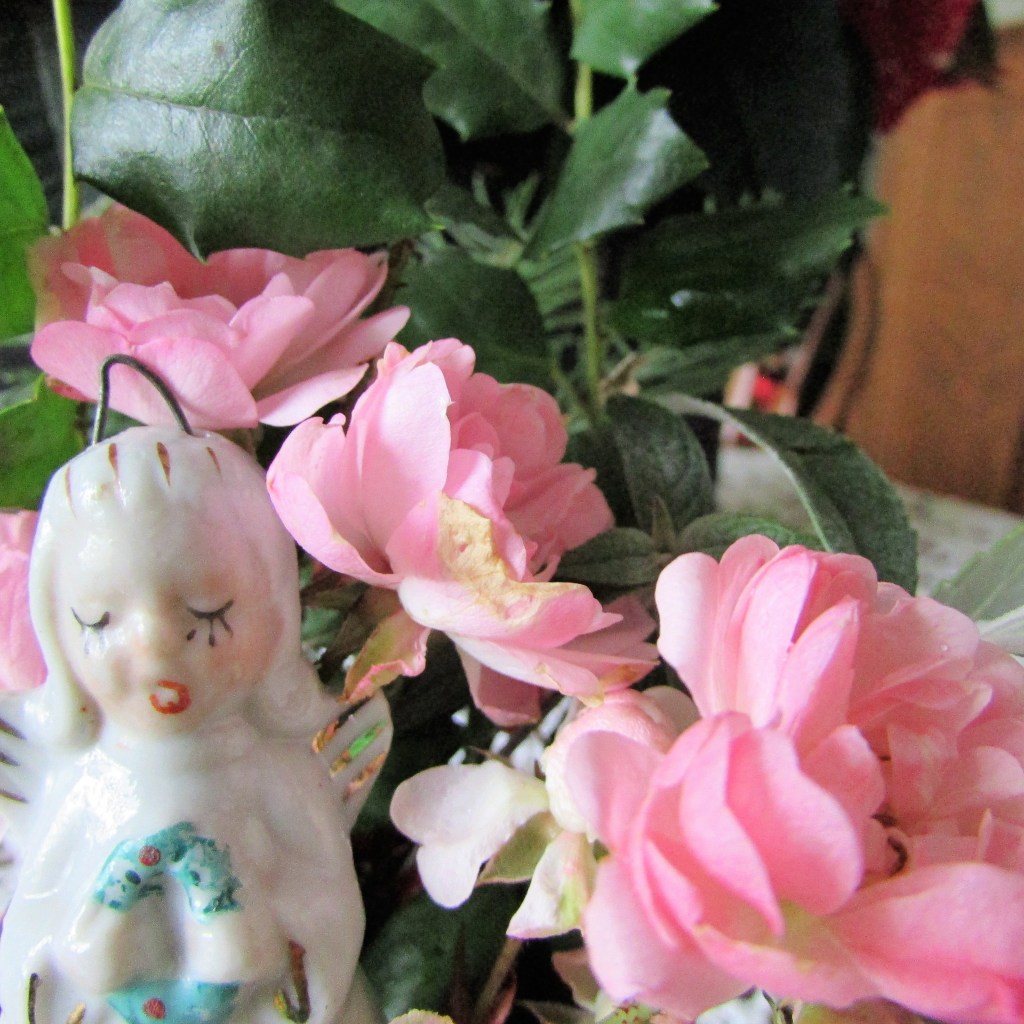 The small angel was given to me when I was a baby. I don’t remember who, but I am so grateful to have this vintage remembrance of a time long past.