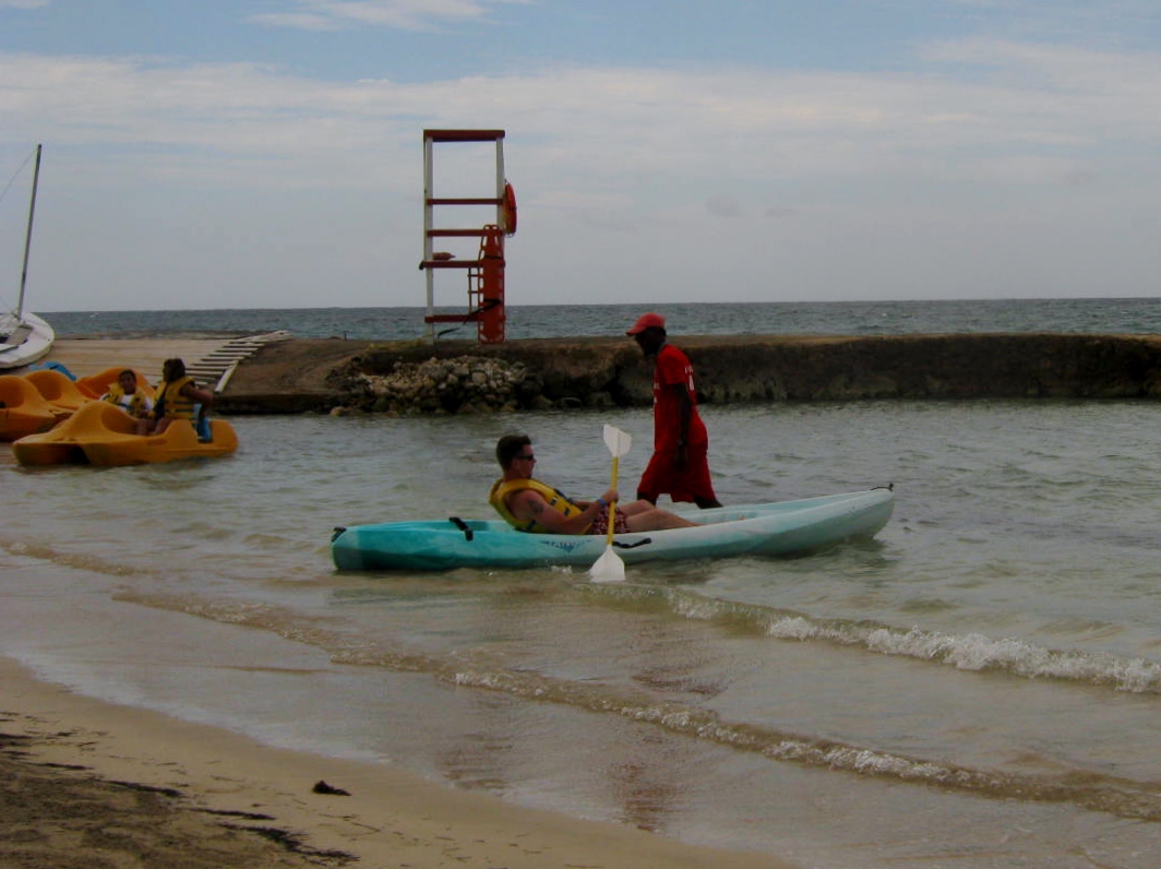 Sunrise in Montego Bay, Jamaica. A fisherman soundlessly glides past the sleeping Royal Decameron Resort.