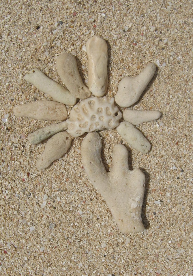 Jamaica beachcombing finds: urchins, sea glass, small pebbles and shells. There are amazing coral pieces also, but I am not sure if there are regulations against taking them out of the country.