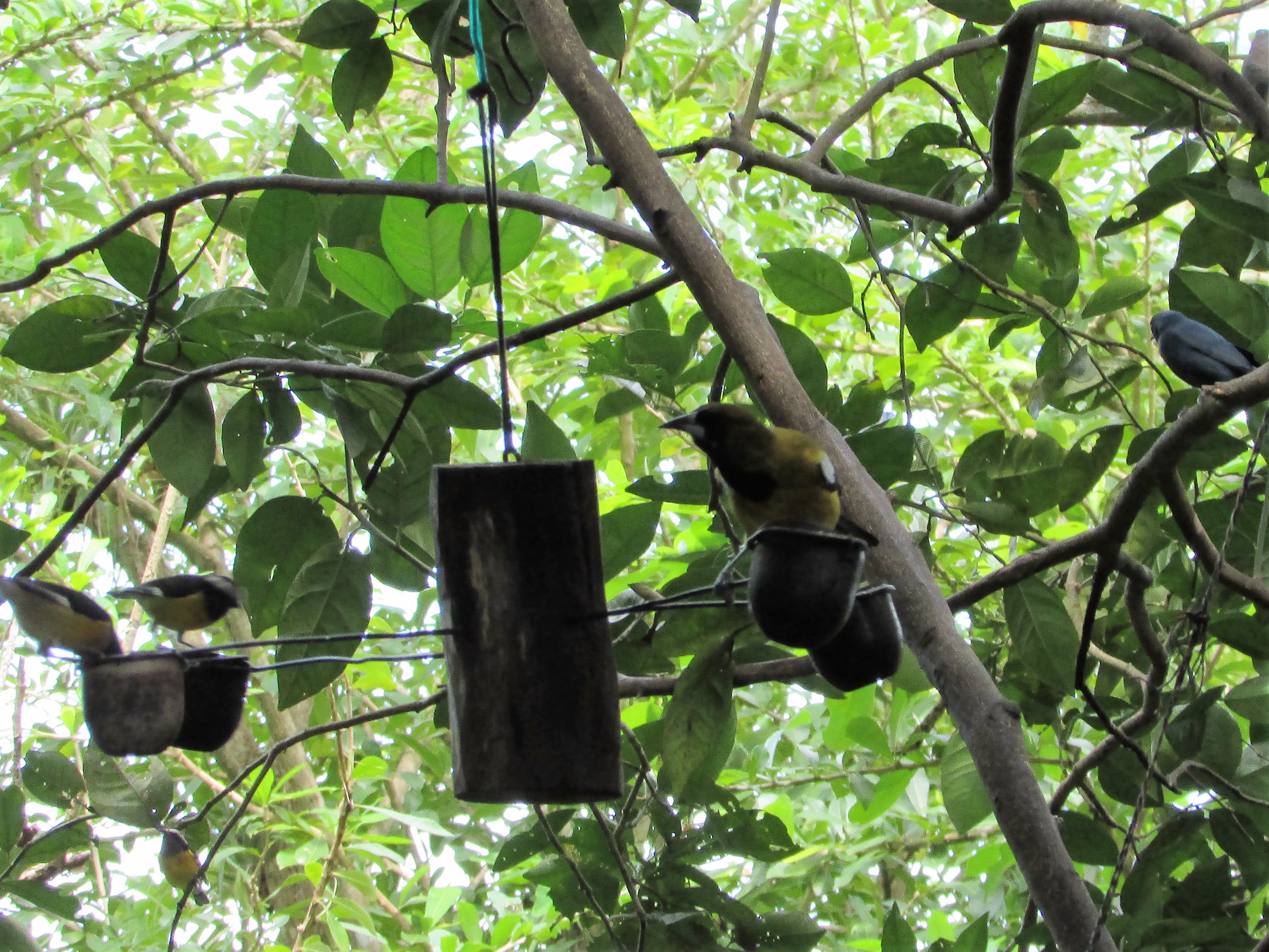The key to the experience is “patience,” our guide Fred told us, and we found it to be the case. The hummingbirds eyed us up a bit from their perches near the roof of the terrace, deciding if we were worthy of their attention.